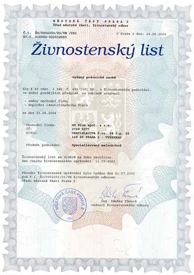Zeithammer Pavel Z-Plus vedená na OŽÚ v Teplicích č.j.: 99/00812Štu, ev. č.: